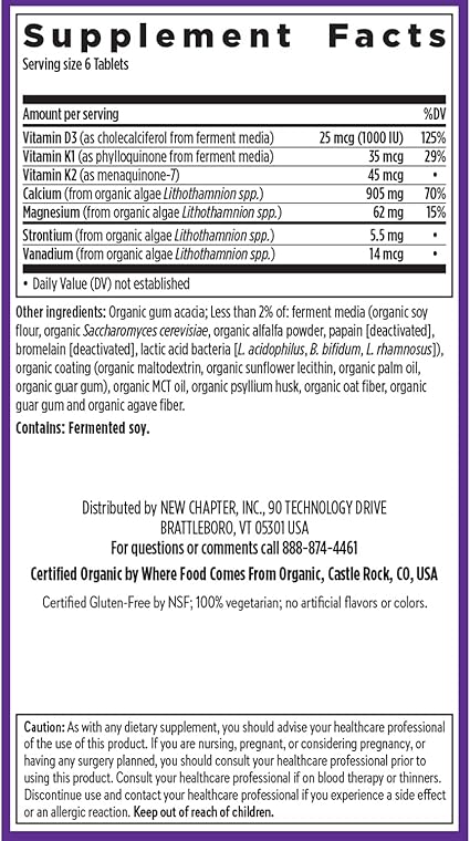 Did you know that most calcium carbonate supplements come from limestone rock and lack other bone-supportive nutrients? Our organic plant calcium supplement for bone health is different! Bone Strength Take Care™ is sourced from Red Marine Algae, an extensively researched form that’s rich in Calcium plus Magnesium and 70+ naturally occurring trace minerals. No limestone rock! For your best absorbed calcium formula, we add a proprietary blend of Vitamin K2 and fermented D3 that directs calcium right to your bones where you need it, which also helps to maintain artery health. Experience the magic inside our clinical-strength dose organic plant calcium for 3-in-1 benefits: strong bones, flexible joints, and heart health. These miniature tiny tablets are easy to swallow. Here at New Chapter®, we sustainably source nature’s finest ingredients and craft with you and our planet in mind. Stay stronger for longer with Bone Strength Take Care.