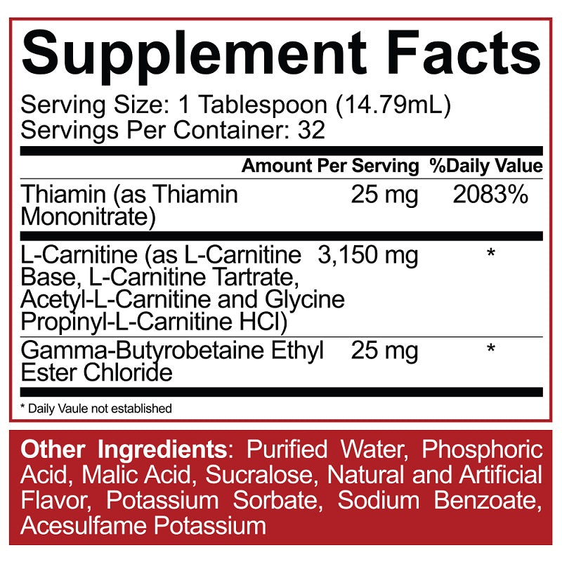 Liquid L-Carnitine 3150 is a mega-dose formula that combines the four most effective forms of Carnitine with the powerful “Super Carnitine” ingredient Gamma-Butyrobetaine Ethyl Ester HCl (“GBB”). This combination creates a high-performing liquid L-Carnitine product.