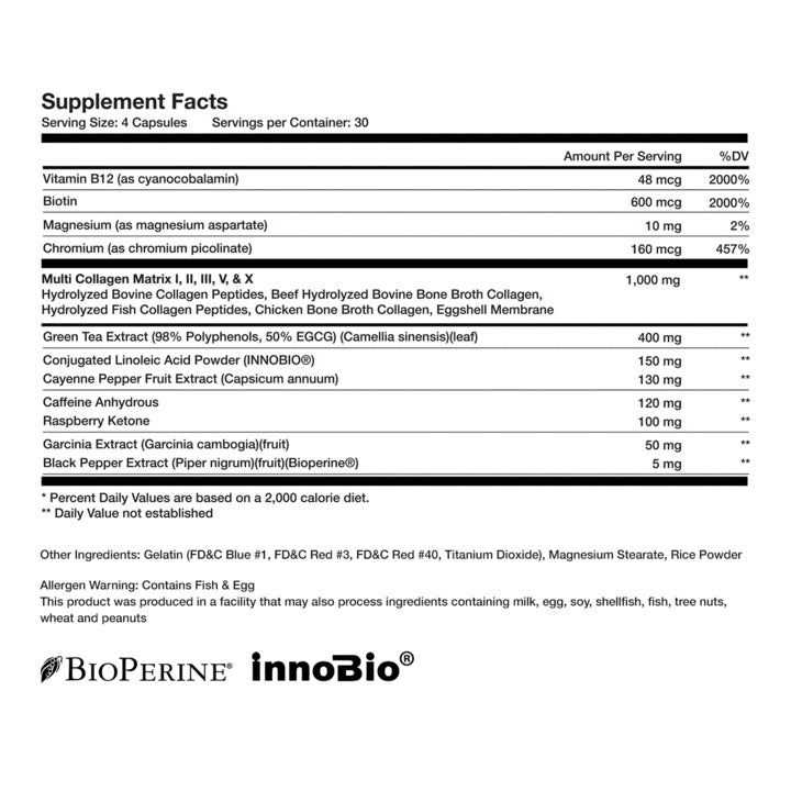 Collagenic™ Burn is infused fortified with extremely powerful ingredients that benefit not only weight loss and fat burning goals but also provide you with energy and collagen supplementation so your hair, skin, nails, joints and gut are healthier than ever.