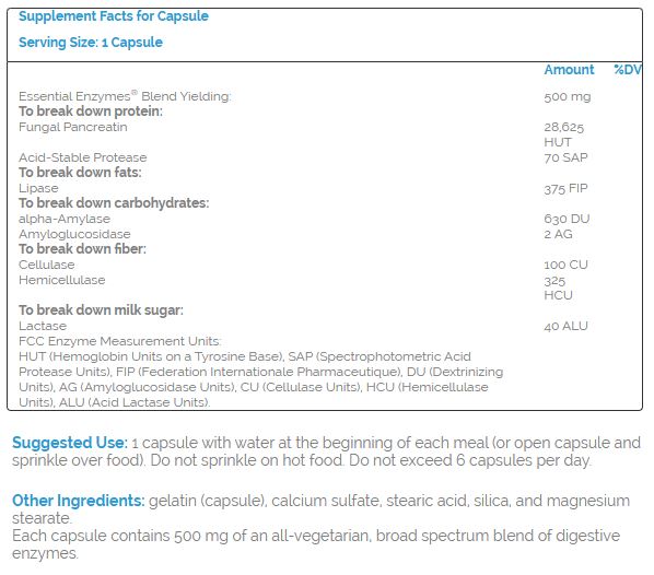 Digestive enzymes are highly specific agents that help transform the food we eat into nutritional compounds our bodies need for living. Essential EnzymesUltra™ is a Bio-Aligned Formula®; it is highly diverse and utilizes multiple levels of enzymes for digesting food in a wide range of pH levels. It contains five types of proteases (protein-digesting enzymes) and multiple enzymes for the digestion of carbohydrates, fats, fiber, and milk sugars. It is one of the most sophisticated arrays of digestive enzymes on the market today for supporting digestive comfort.