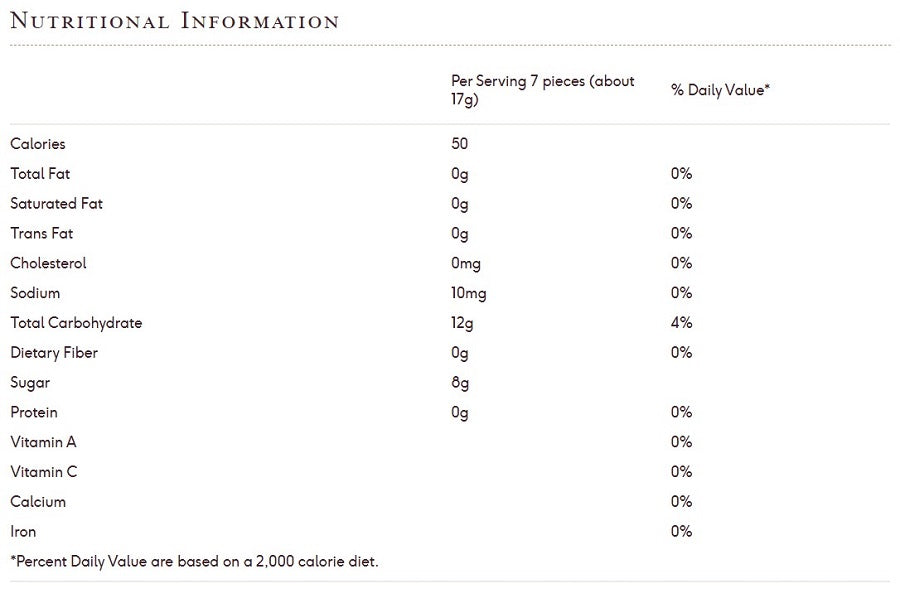 The gummy of gummies. Wonderfully tender and chewy with a flavor that’s truly artisanal. It's tempting to pop two or three in your mouth at once but take it slow and savor the sweet spice and tantalizing texture.
