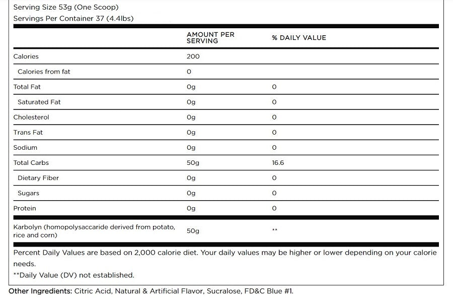 Karbolyn is absorbed into the bloodstream like a simple sugar but without the typical crash caused when your muscles run out of fuel. It has also been shown to be absorbed as quickly as pure Dextrose (a simple carbohydrate). Yet, it still provides sustained energy without “crashing”. Karbolyn ensures you are optimizing your glycogen stores before, during and after training. It takes all the guesswork out of carb loading.