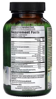 This formula provides all of the essential B’s, including a full 1,000 mcg of methylcobalamin – the biologically active form of vitamin B12. This advanced formulation also includes Medium Chain Triglycerides (MCTs) as the foundation oil for the Liquid Soft-Gel delivery system in this product. MCTs are a preferred source of quick cellular energy. MCTs are rapidly absorbed into the bloodstream and immediately converted into energy at the cellular level. These nutrients play a critical role in numerous biochemical reactions throughout the body. They are especially important for metabolism, energy production, and the maintenance of a healthy nervous system. B-vitamins are water-soluble nutrients that are poorly stored in the body and readily eliminated after a short period of time. Therefore, in order to maintain optimum levels, B-vitamins must be replenished daily.