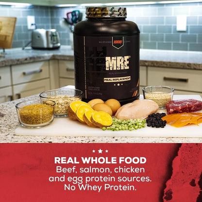 Fuel your body with MRE, commonly known in the Military as Meals Ready-to-Eat. M.R.E. are rations given to the soldiers to provide them with nutrients to keep running strong while out in the field. The most important fuel you can give your body is real food, especially whole foods. MRE is made from natural ingredients and a real protein blend. This formula contains absolutely no whey! With MRE, Redcon1 has given you the nutrients you need to repair and recover muscle tissue from the best possible whole foods sources. Stop reaching for fast foods and reach for whole foods with M.R.E.