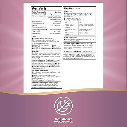 Nature's Way Cold + Flu Relief Syrup helps you feel better faster. This homeopathic syrup shortens colds and reduces severity of cough, congestion, and sore throat. Alpha CF reduces fever, body aches, chills, and runny nose. Non-drowsy, berry flavored syrup.