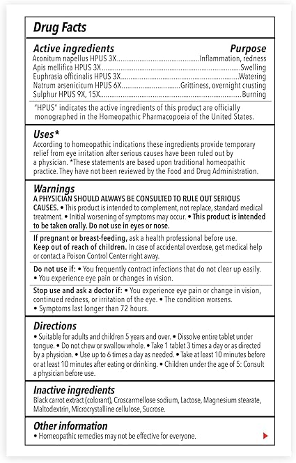 Pink Eye Relief uses 100% natural active ingredients to gently soothe all types of eye irritation including burning, grittiness, and overnight crusting of the eye. No artificial sweeteners, no artificial flavoring, no artificial coloring, no harsh chemicals. The same natural eye formulas you love are now available as Fast Dissolving Tablets. Natural Eyes address your symptoms instead of masking them.