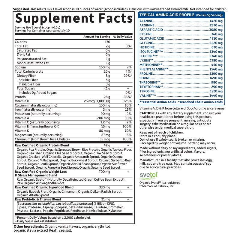 Suggested Use: Mix 1 scoop with water, smoothies, or almond milk