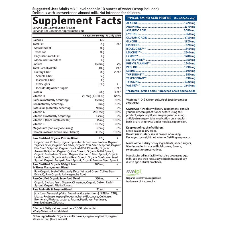 Raw Organic Fit is a Certified USDA Organic, Raw, plant-based, vegan, high-protein powder specifically designed for weight loss and is made with 13 raw sprouted organic ingredients. It differs from our other proteins because it has several additional clinically studied ingredients, including Svetol® Green Coffee Bean Extract, Raw Food Created Chromium and Organic Cinnamon to help you burn fat, maintain healthy blood sugar, boost your energy, lose weight and look great!