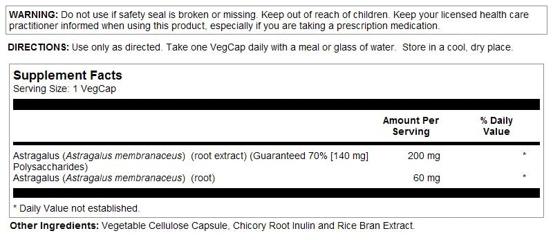 Astragalus Root Extract 200mg 30VegCaps by Solaray