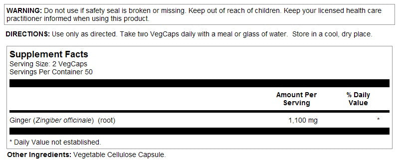 Ginger Root 550mg 100VegCaps by Solaray
