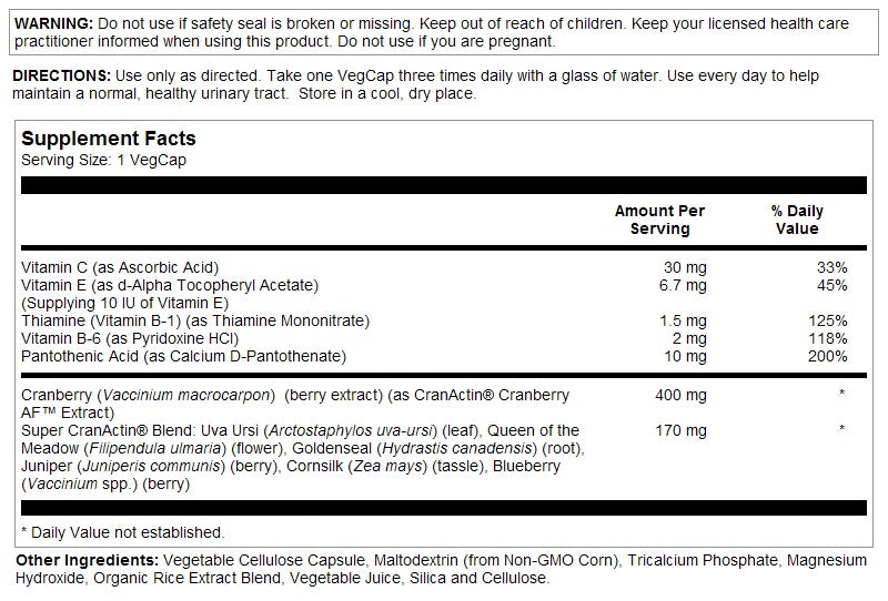 Super CranActin Cranberry Extract is designed to help support urinary tract and bladder health. Compounds found in cranberries may help keep bacteria from adhering to bladder cells. Super CranActin also inlcudes Vitamin C, E, B1, B6, and Pantothenic Acid for additional antioxidant activity and immune system support.