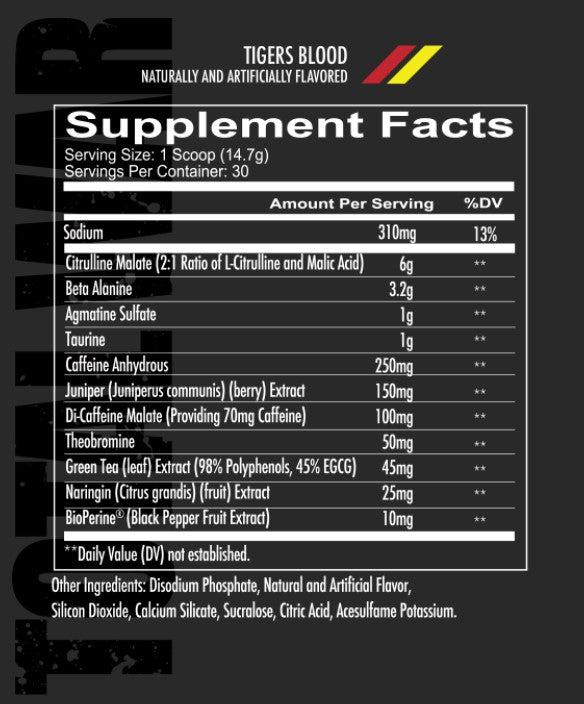 Suggested Use: Assess your tolerance by taking 1/2 scoop prior to training. Once your tolerance is assessed mix 1 scoop with 4-6 ounces of water 30 minutes prior to training. Do not exceed 1 scoop in a 24-hour period.