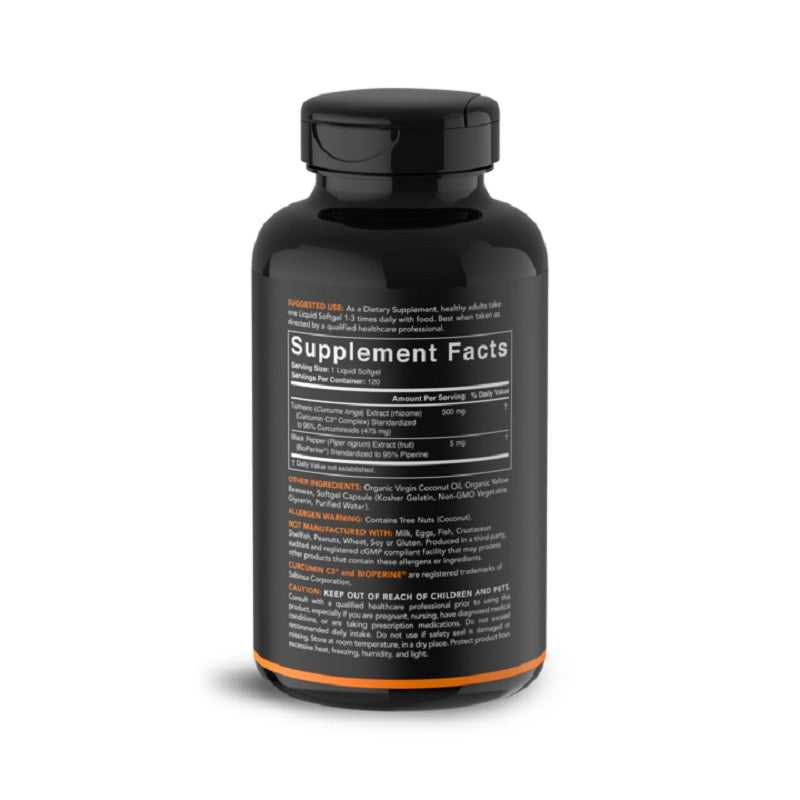 Sports Research® Turmeric Curcumin contains C3 Complex®, a patented form of curcumin which may help support your healthy lifestyle. Each softgel also contains a combination of Virgin Coconut Oil and BioPerine®, which may assist with bioavailability. Curcumin can help reduce joint pain and inflammation in healthy adults.
