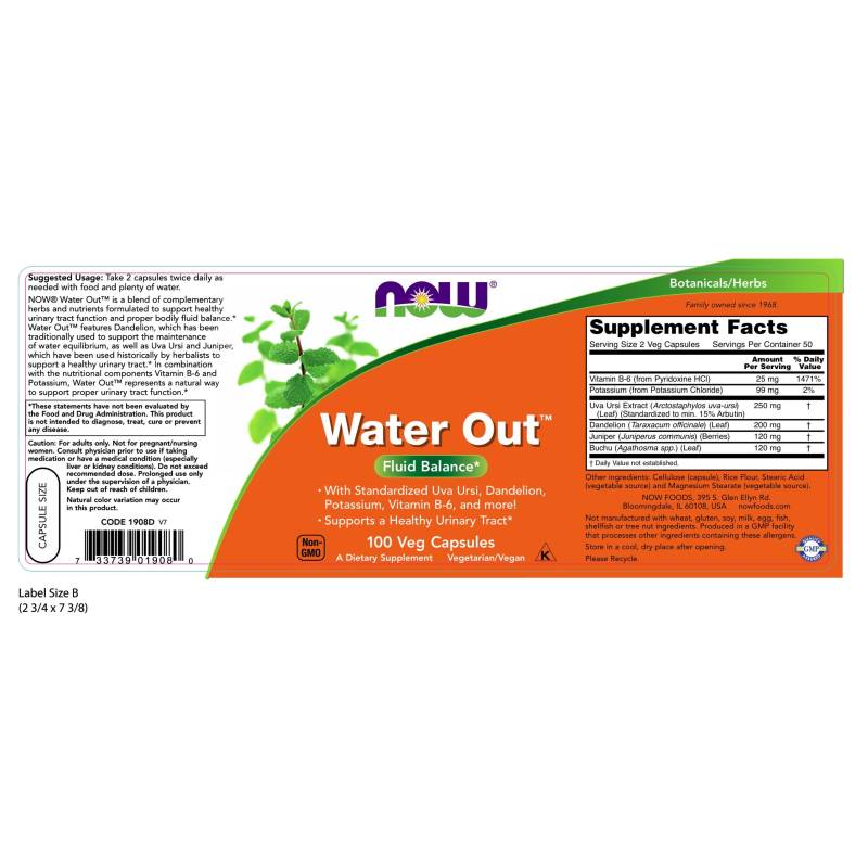 Water Out™ is a blend of complementary herbs and nutrients formulated to support healthy urinary tract function and proper bodily fluid balance. Water Out™ features dandelion, which has been traditionally used to support the maintenance of water equilibrium, as well as uva ursi and juniper, which have been used historically by herbalists to support a healthy urinary tract. In combination with the nutritional components vitamin B-6 and potassium, Water Out™ represents a natural way to support proper urinary tract function.